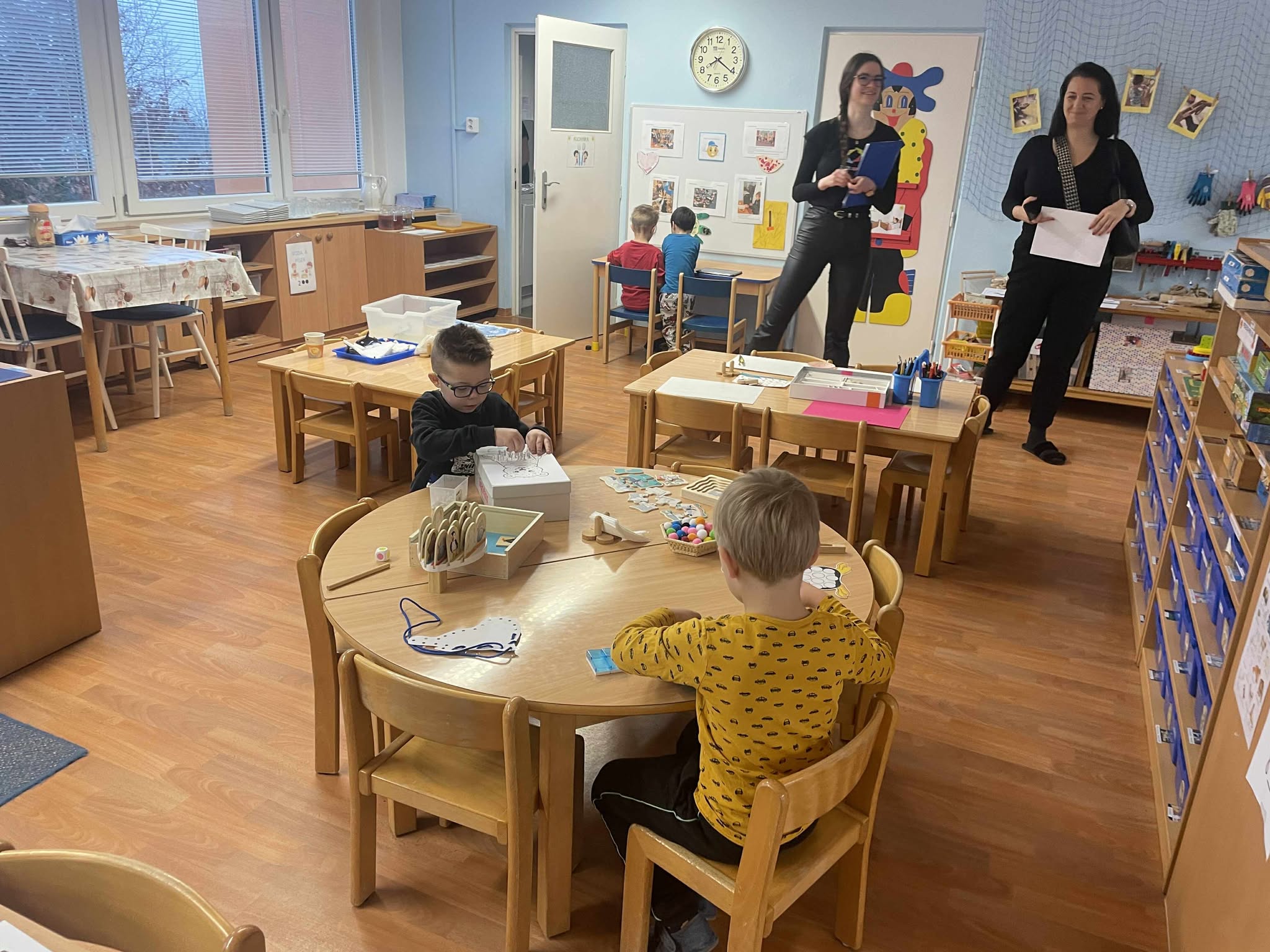 Milí rodiče, tento týden se na práci a činnosti v centrech aktivit i pedagogů přijely podívat paní učitelky z celé České republiky. Den ve třídě Začít spolu započal uvítáním od paní ředitelky a následovalo pozorování struktury dne ve třídě Začít spolu. Paní učitelky v rámci pozorování a náslechů měly možnost vidět činnosti v centrech aktivity, spontánní hry, ranní kruh, sebehodnocení, pohybovou chvilku a došlo i na evokační otázky a reflexi dopoledního vzdělávacího procesu. Po odchodu dětí na pobyt venku jsme paním učitelkám představily didaktické hry, pomůcky a odbornou literaturu programu Začít spolu. V přiložených souborech Evaluace-listopad-2025, Pozorovaci-arch-listopad můžete nahlédnout do evaluace našeho vzdělávání.