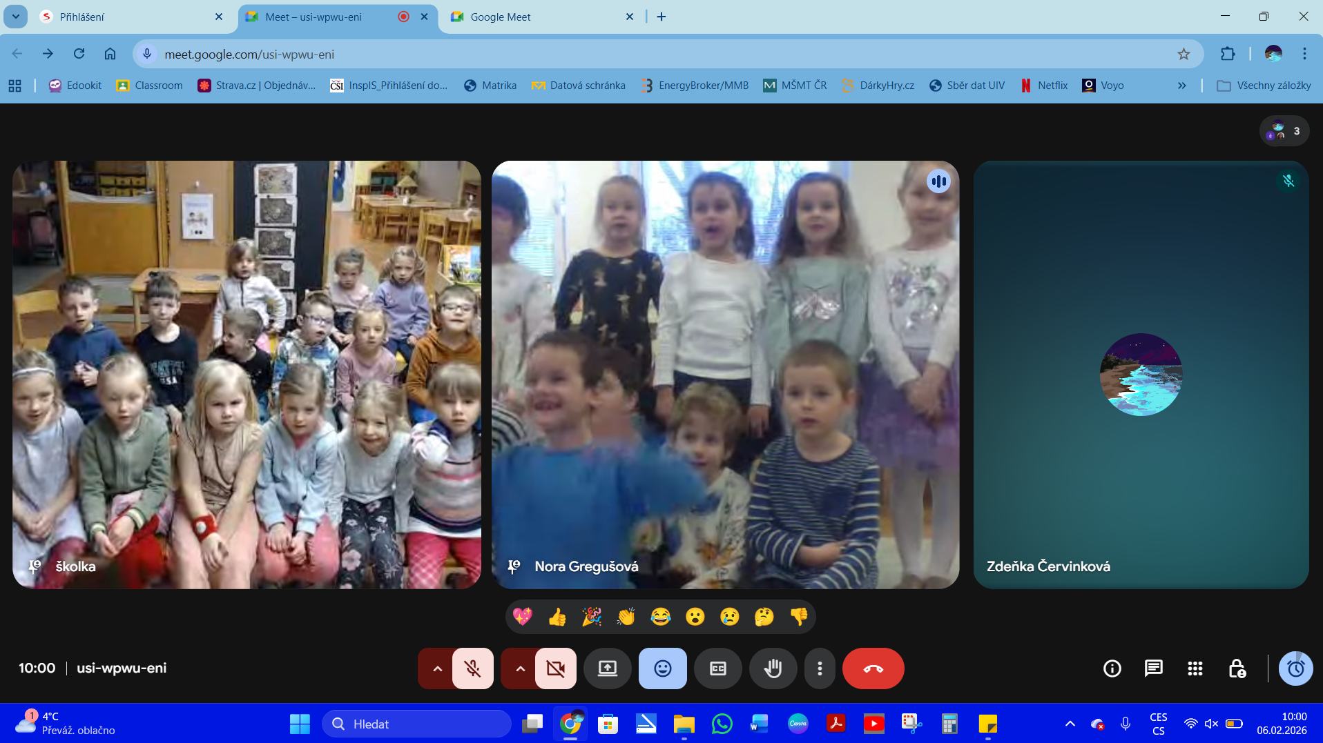 Dnes se děti, které čeká výjezd do Bratislavy v rámci ERASMUS+ spojily formou videohovoru s dětmi naší partnerské mateřské školy MŠ Bancíkovej v Bratislavě. Děti si vzájemně sdílely témata, o kterých si aktuálně povídají a také si ukazovaly navzájem vlastní výrobky. Společně jsme se s dětmi v Bratislavě dohodly, že si ještě jednou zavoláme, zhodnotíme uplynulý čas a připravíme si něco, co můžeme společně vyzkoušet i v online prostoru.